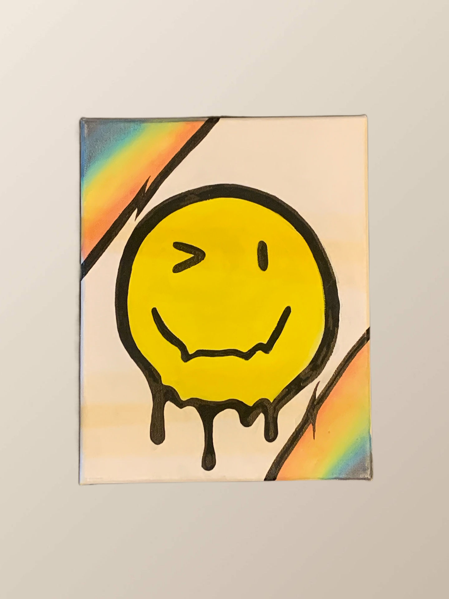Shop All › "Drippy Rainbow Smile" Image 1 of 1 "Drippy Rainbow Smile" $15.00 8x10 canvas, White background, rainbow with Black ribbon design & winking drippy smiley. Purchase Added! 8x10 canvas, White background, rainbow with Black ribbon design & winking drippy smiley. Reviews Reviewer Name Review Date Star Rating Description Posted on Etsy Product Show More