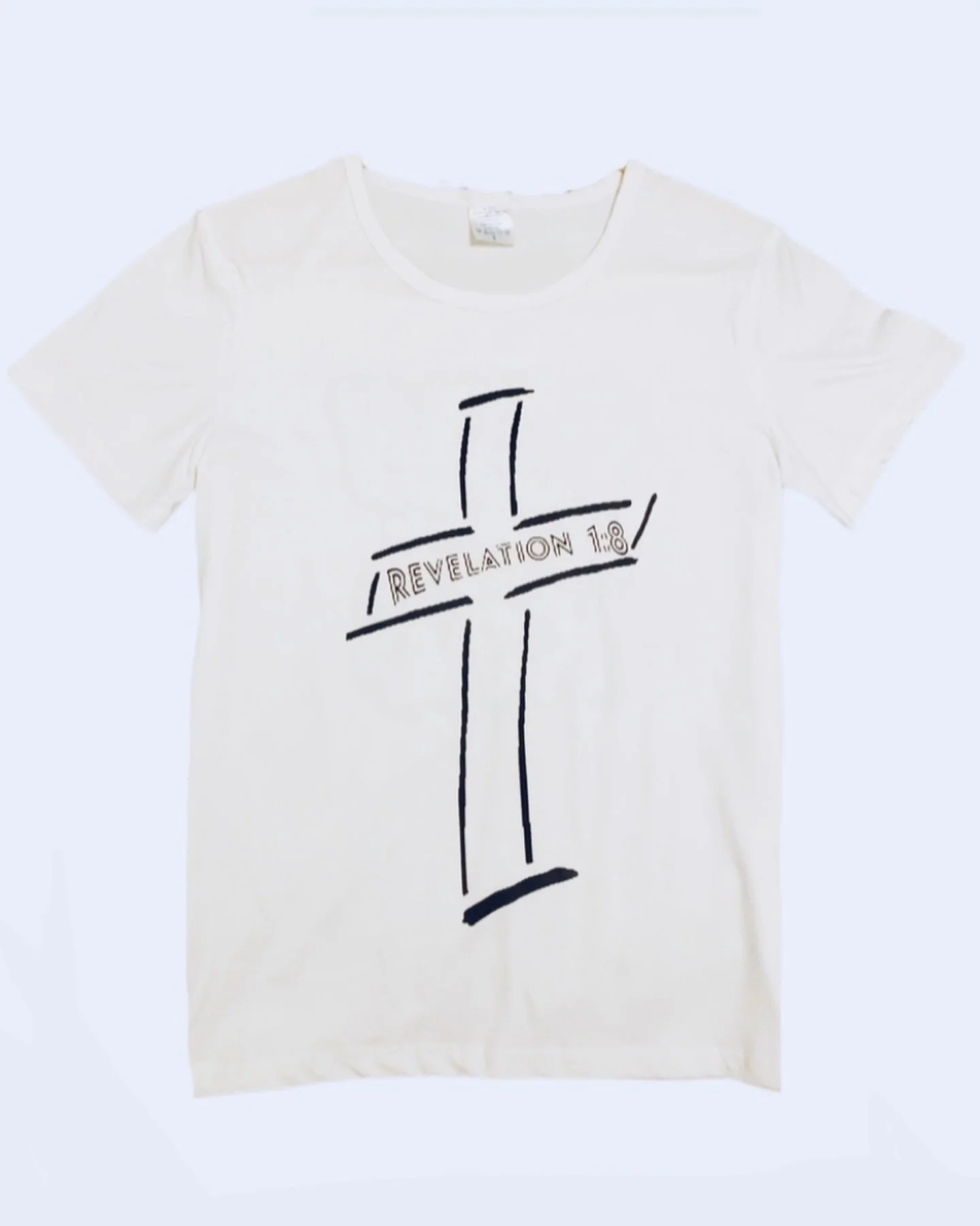 Front: "Revelation 1:8" thoughtfully integrated within a striking cross design.